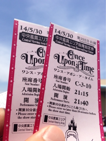 ワンス・アポン・ア・タイム、当選チケットです。ラッキーなことに中央前例の席でした。